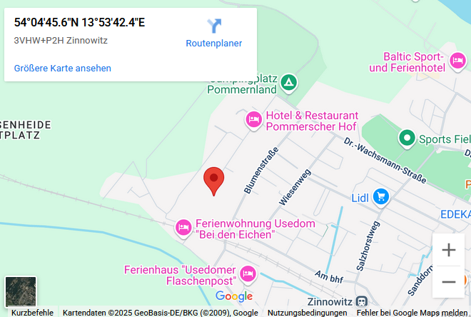 Die Anreise erfolgt über die B111. Dort links in den Ort Zinnowitz auf den Möskenweg abbiegen.